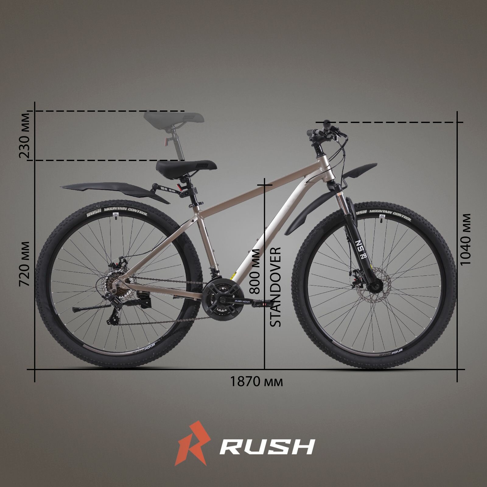 Велосипед алюминиевый взрослый горный 29" RUSH HOUR XS 925 21 скорость черный рама 17" рост 160-175 см. скоростной спортивный с амортизацией найнер переключатель SHIMANO дисковый 24 780 ₽