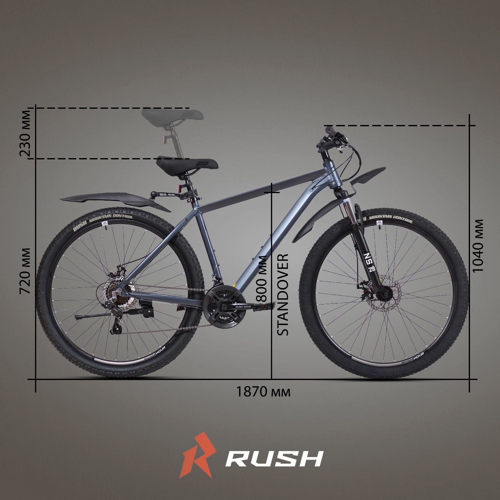 Велосипед алюминиевый горный дисковый 29" рост 160-175см 21 скорость серый рама 17" велик взрослый переключатель SHIMANO скоростной найнер велосипед RUSH HOUR XS 925 24 780 ₽