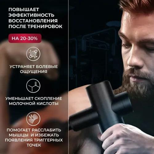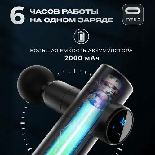 Перкуссионный массажер ударный вибрационный пистолет для тела от боли в мышцах / 30 скоростей и 6 насадок в комплекте информация: