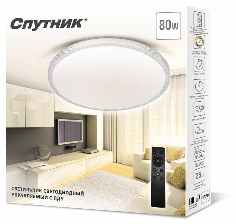 Отзывы на Светильник потолочный светодиодный Спутник SP-PDU C80W/500mm с дистанционным управлением