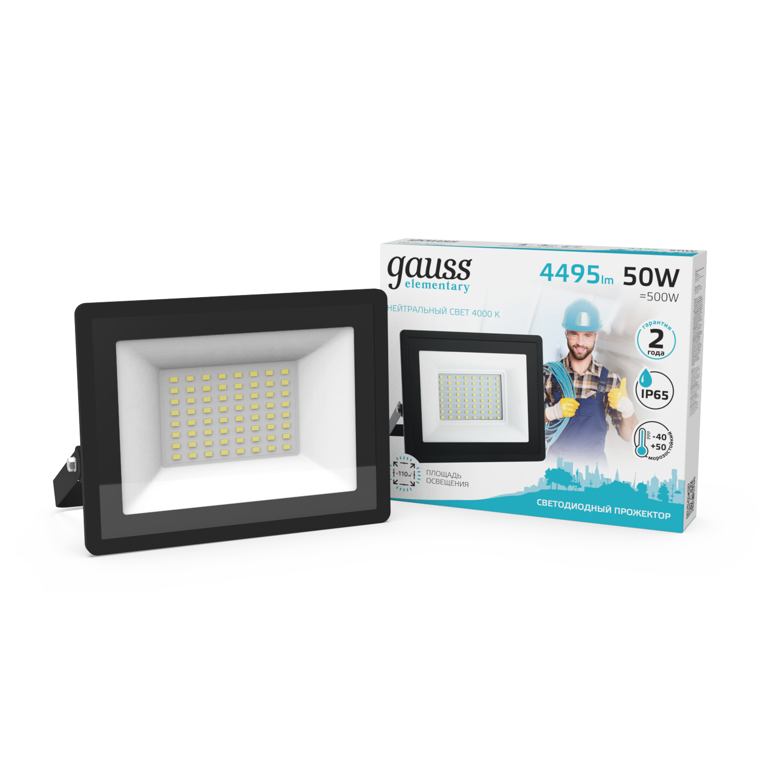 Прожектор Gauss Elementary 50W 4475lm IP65 4000К черный 1/10