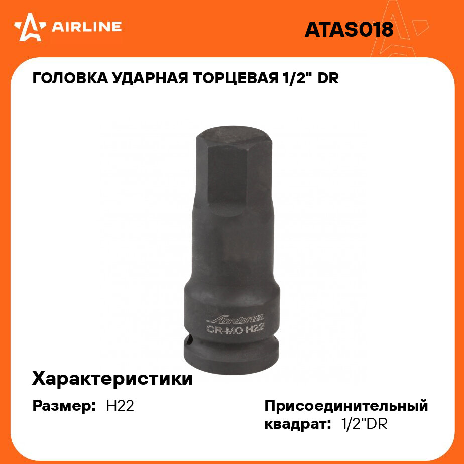 ATAS018 AIRLINE Головка ударная торцевая 1/2 DR внешний шестигранник H22 (ATAS018)