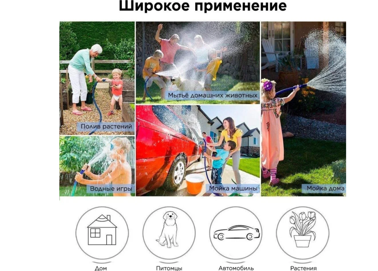 Отзывы на Шланг садовый Magic Hose, растягивающийся шланг для полива, шланг водяной с распылителем, 30 м.