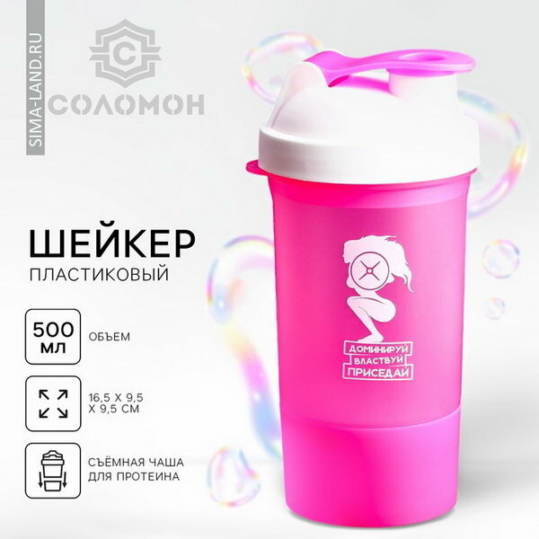 10 цен на Шейкер спортивный «Доминируй, властвуй, приседай», розовый, с чашей под протеин, 500 мл, 4593689