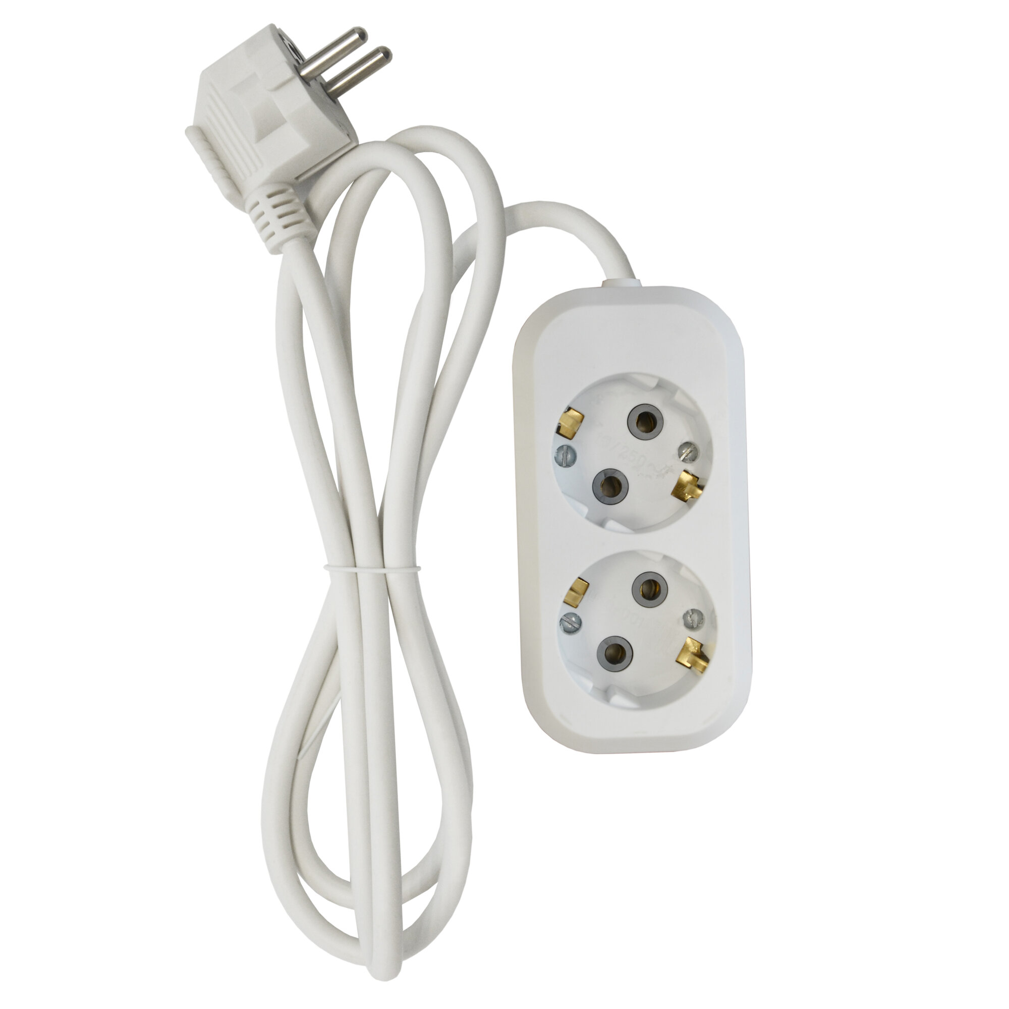 10 цен на Удлинитель 1,5 метра, 3х1 мм, белый, сетевой с заземлением / 2 розетками, для электрооборудования, для дома и дачи PARTNER