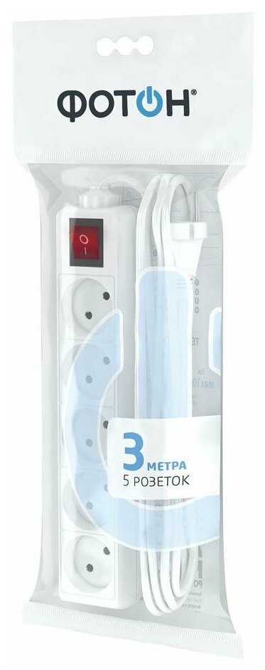 Фотон Удлинитель сетевой 10-35S, 3м, 5 розеток, 10А, с выключателем, Белый 21118 информация: