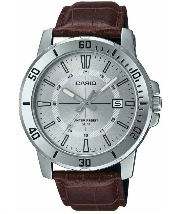 MTP-VD01D-7C Casio наручные часы кварцевые WR50 (5 атм) мужские серебряный, серый отображение числа подсветка стрелок минеральное стекло 5 452 ₽