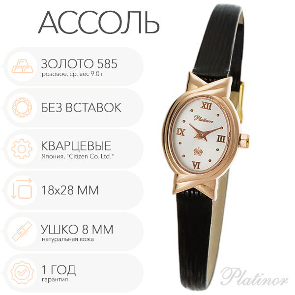 Женские золотые часы Platinor Ассоль, арт. 90350.216 информация: