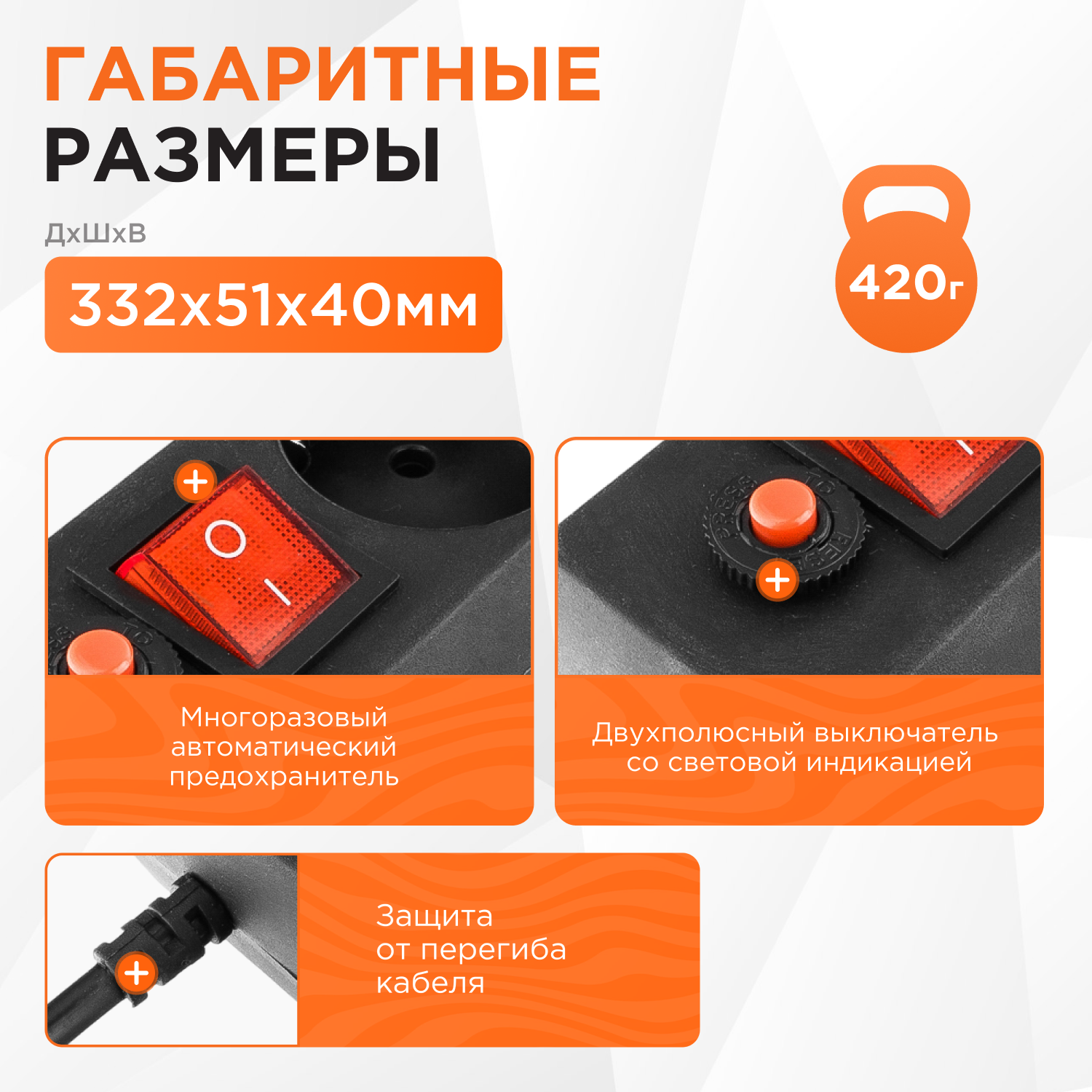 Сетевой фильтр Гарнизон EHB-0, 6 розеток, с/з, 10А / 2200 Вт 0.5 м