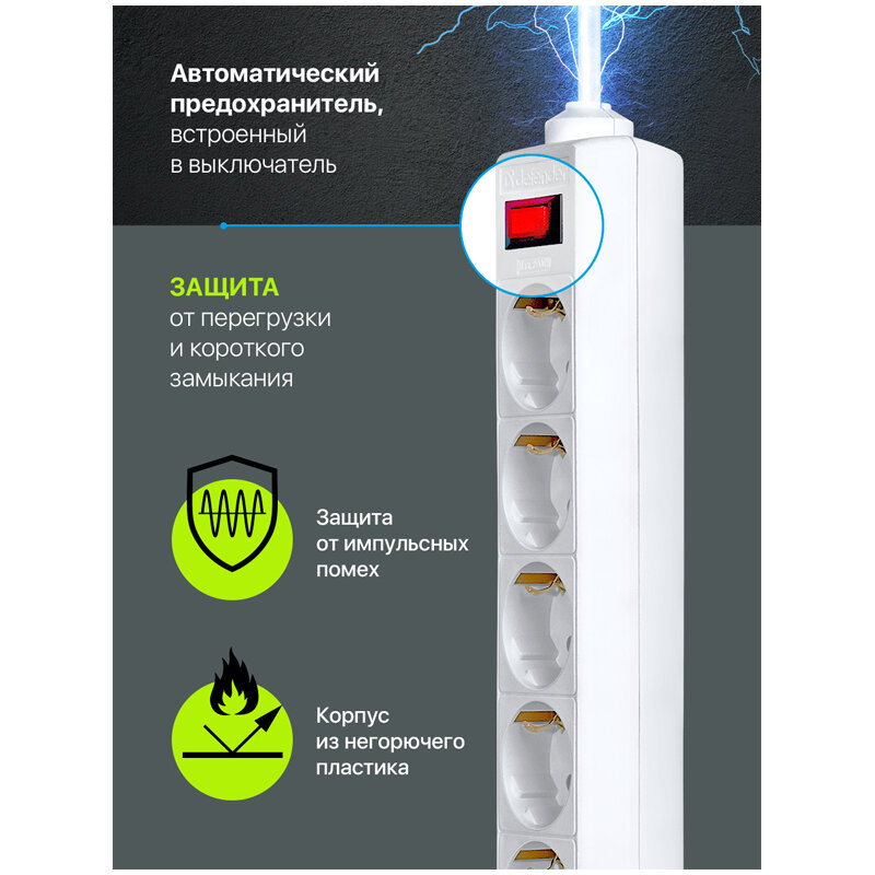Отзывы на Комплект 5 шт, Сетевой фильтр Defender ES 5 розеток 5.0м, белый