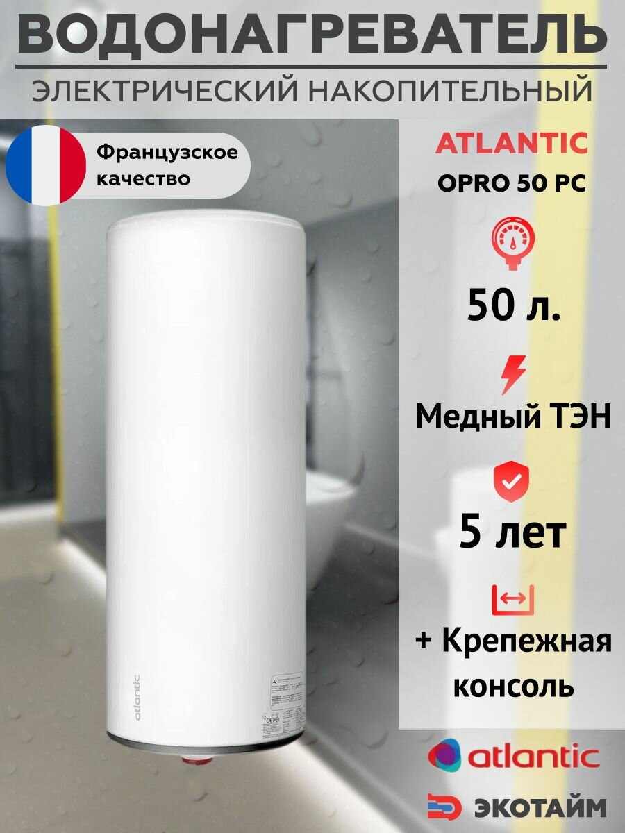 Водонагреватель бойлер Atlantic Opro 50 PC накопительный электрический информация: