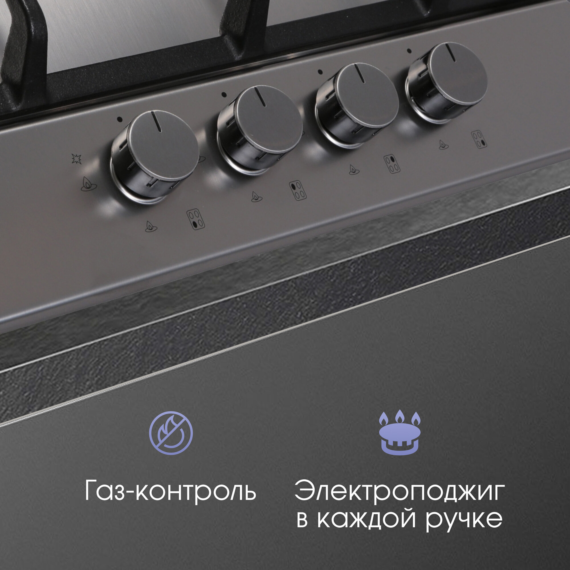 Газовая варочная панель Zigmund & Shtain GN 98.61 S, серебристая, чугунные решетки информация: