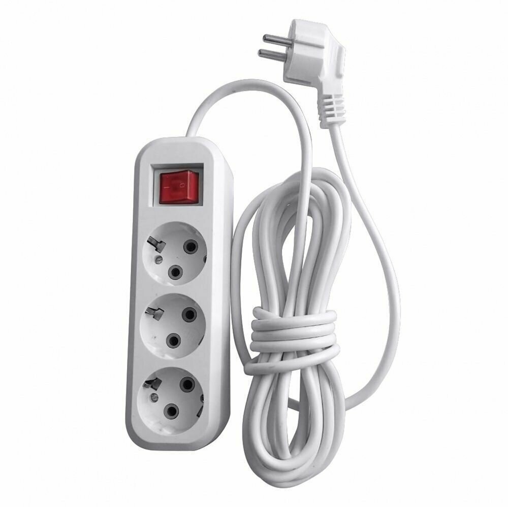 3-местный удлинитель Stekker с заземлением с выключателем, 3x0,75мм2, 3м, 10А, У10а-002, белый HM03- .