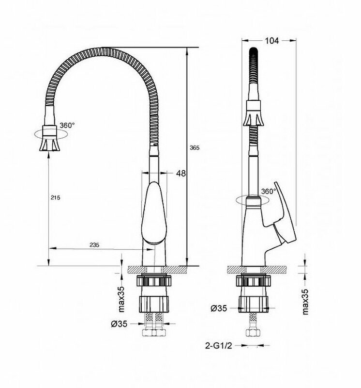 Смеситель для кухни Linara LM0413C с гибким изливом, и 2-функциональным аэратором