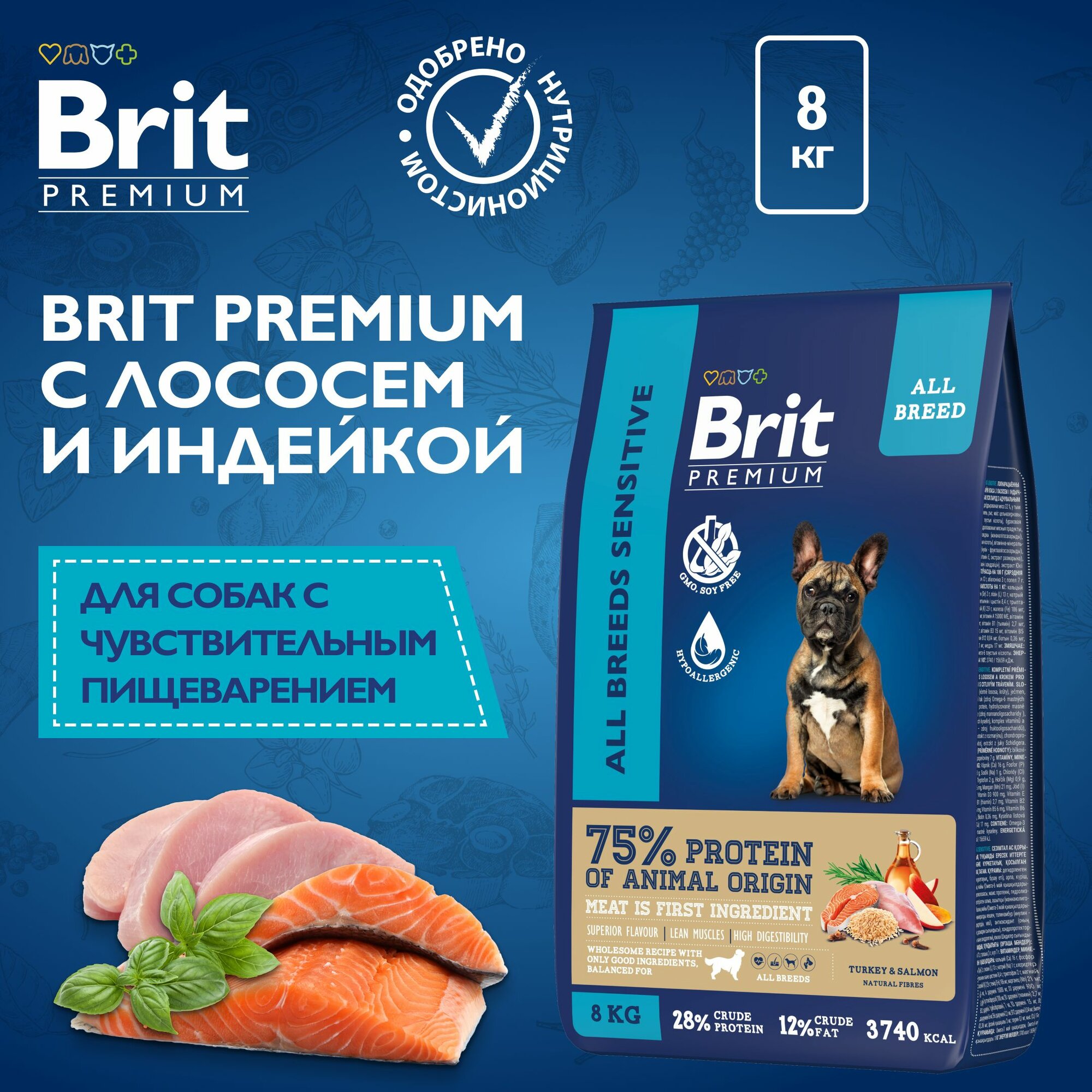 Корм сухой Brit Premium Dog Sensitive для взрослых собак всех пород с чувствительным пищеварением, с лососем и индейкой 8 кг информация: