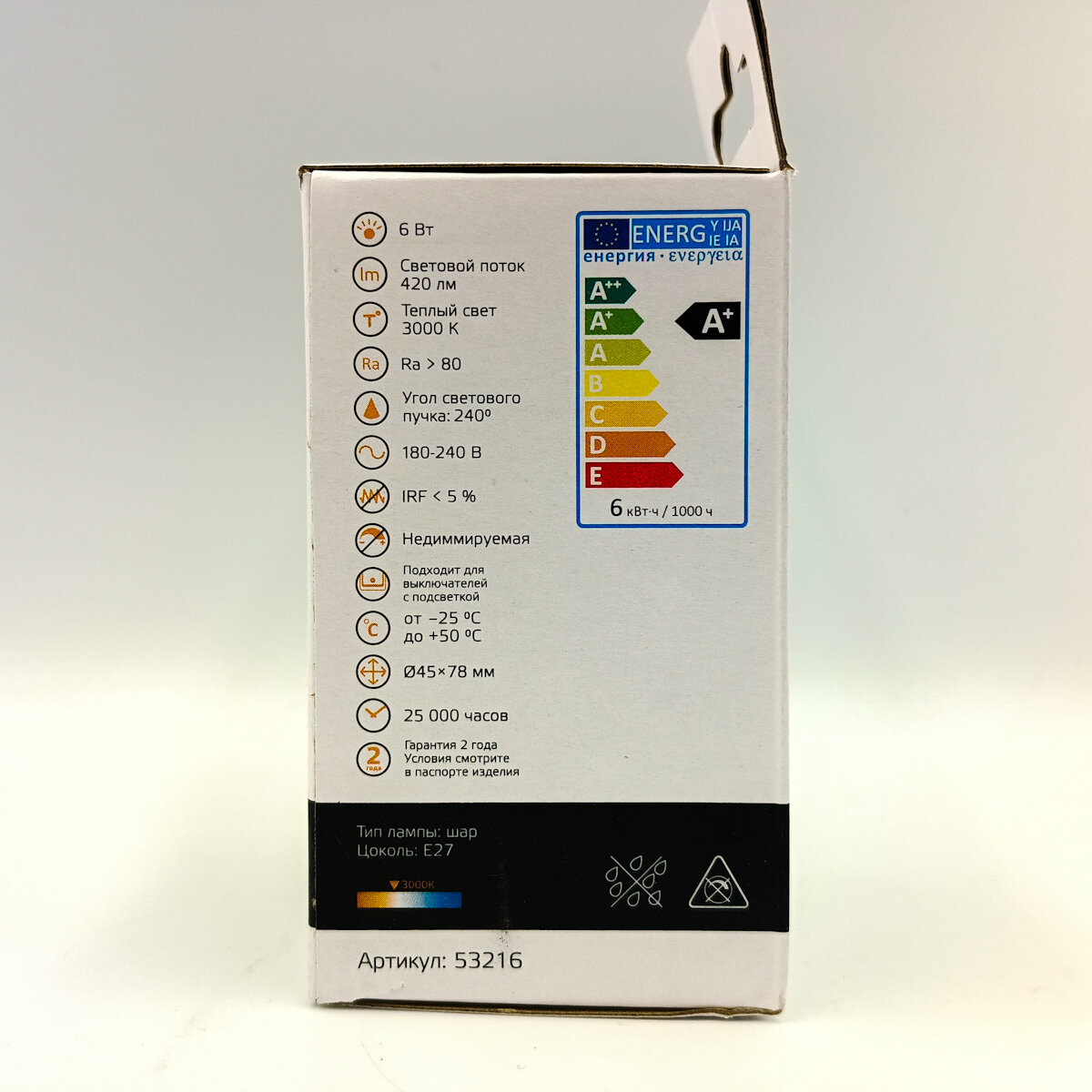Отзывы на (7 шт.) Светодиодная лампочка Gauss G45 шар, мощность 6 Вт, напряжение питания 180-240 В, цветовая температура 3000 К, теплый белый свет, цоколь E27, размер 45х78 мм, 53216