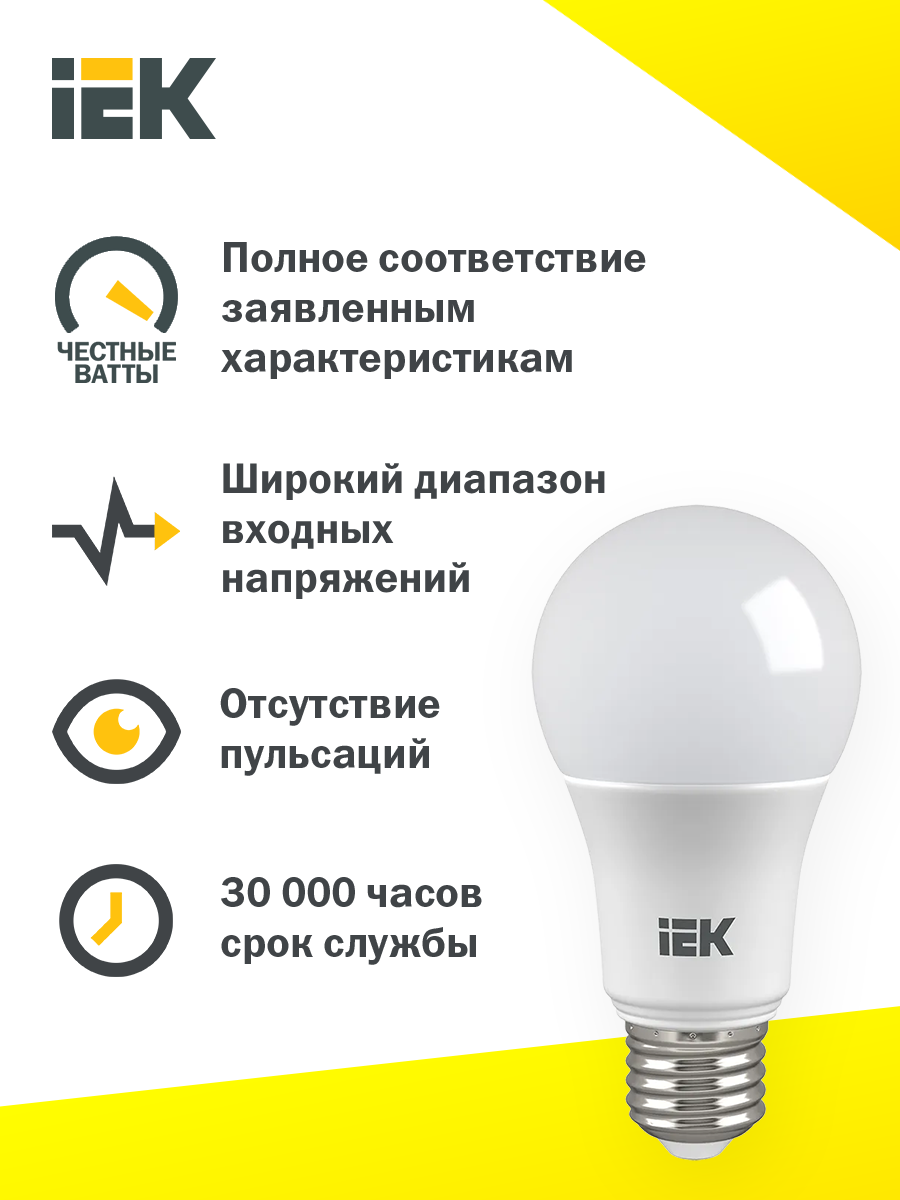 Светодиодная лампа LED A60 шар 13Вт 230В 4000К E27 IEK информация: