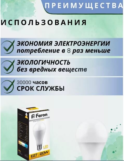 Лампа светодиодная LED 20вт Е27 теплый | код 25787 | FERON (1 шт.)