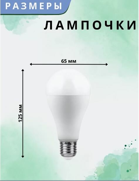 (20 шт.) Светодиодная лампочка Feron ЛОН A65 E27 25W(2200lm) 6400K 6K матовая 135x65, LB-100 25792 Холодный белый. Цоколь E27 5 881 ₽