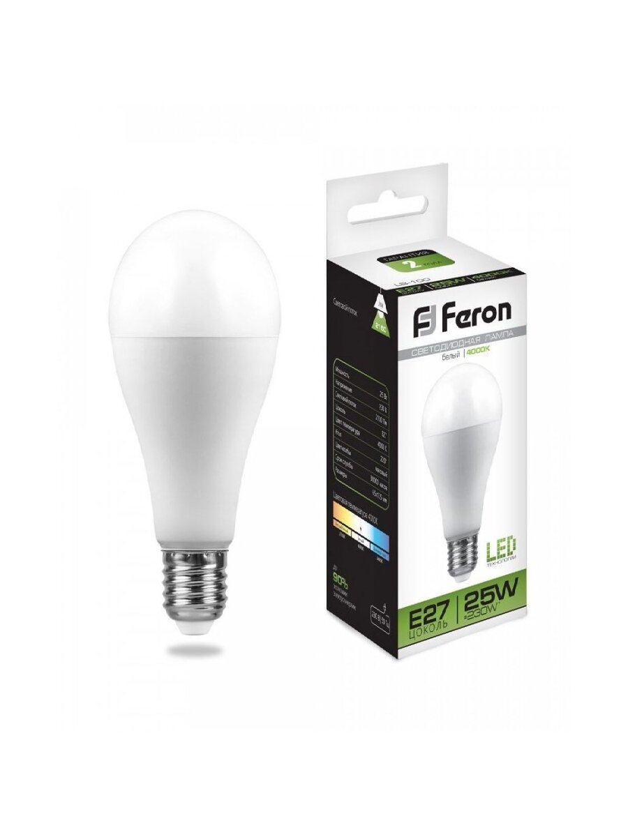 (2 шт.) Светодиодная лампочка Feron ЛОН A65 E27 25W(2150lm) 4000K 4K матовая 135x65, LB-100 25791 Нейтральный белый. Цоколь E27 798 ₽