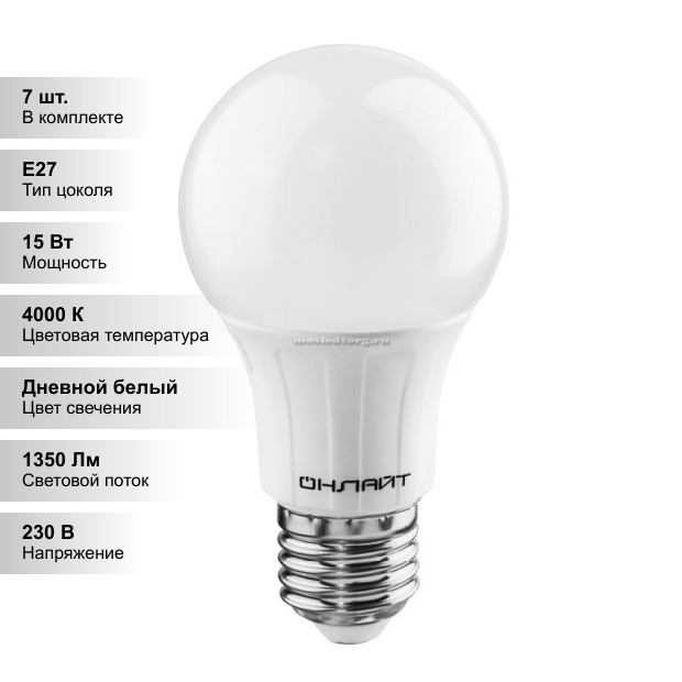 (7 шт.) Светодиодная лампочка онлайт A60 15Вт 230В 4000K E27 информация: