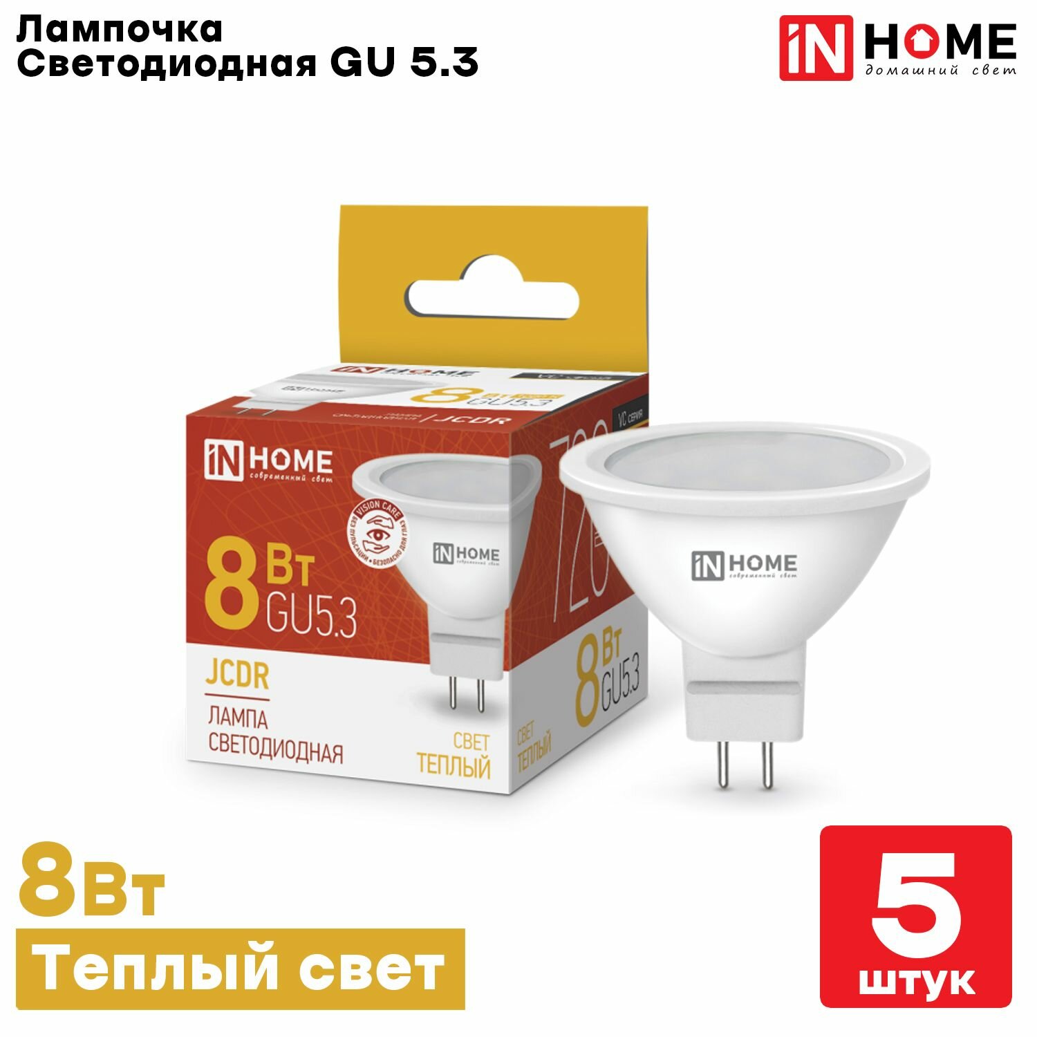 Лампа светодиодная IN HOME 8Вт 230В GU5.3 3000К 720Лм, Теплый белый свет ,5 шт. информация: