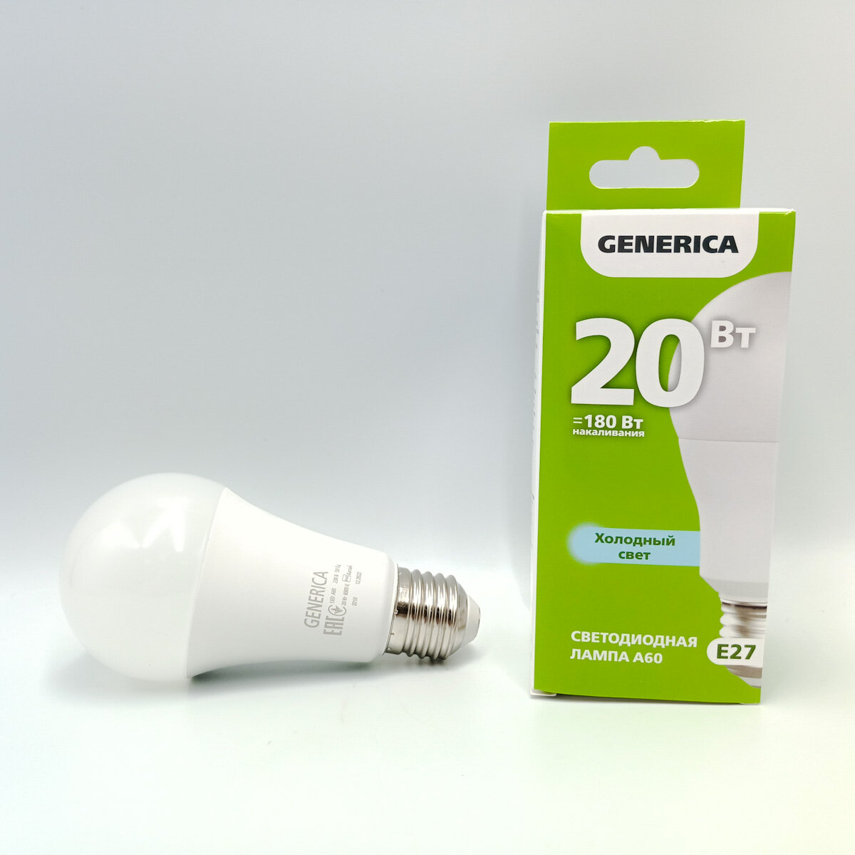 Отзывы на (15 шт.) Светодиодная лампочка GENERICA LED A60 груша, мощность 20 Вт, напряжение питания 220 В, цветовая температура 6500 К, холодный белый свет, цоколь E27, размер 60х125 мм