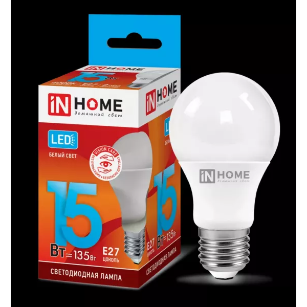 INhome Лампа светодиодная IN HOME LED-A60-VC, Е27, 15 Вт, 230 В, 4000 К, 1430 Лм