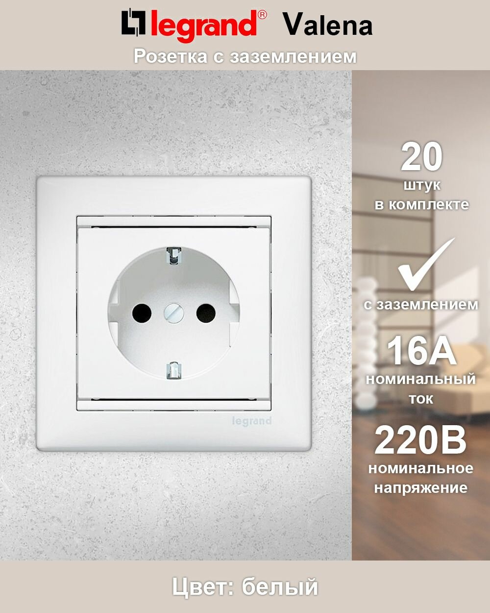 Мы выбрали 10 лучших цен на Розетка с заземлением Legrand Valena 774420 (2шт.), белая 16А. Перед тем как купить Розетка с заземлением Legrand Valena 774420 (2шт.), белая 16А посмотрите найденные предложения из Яндекс Маркета и других сайтов на основе XML фидов.