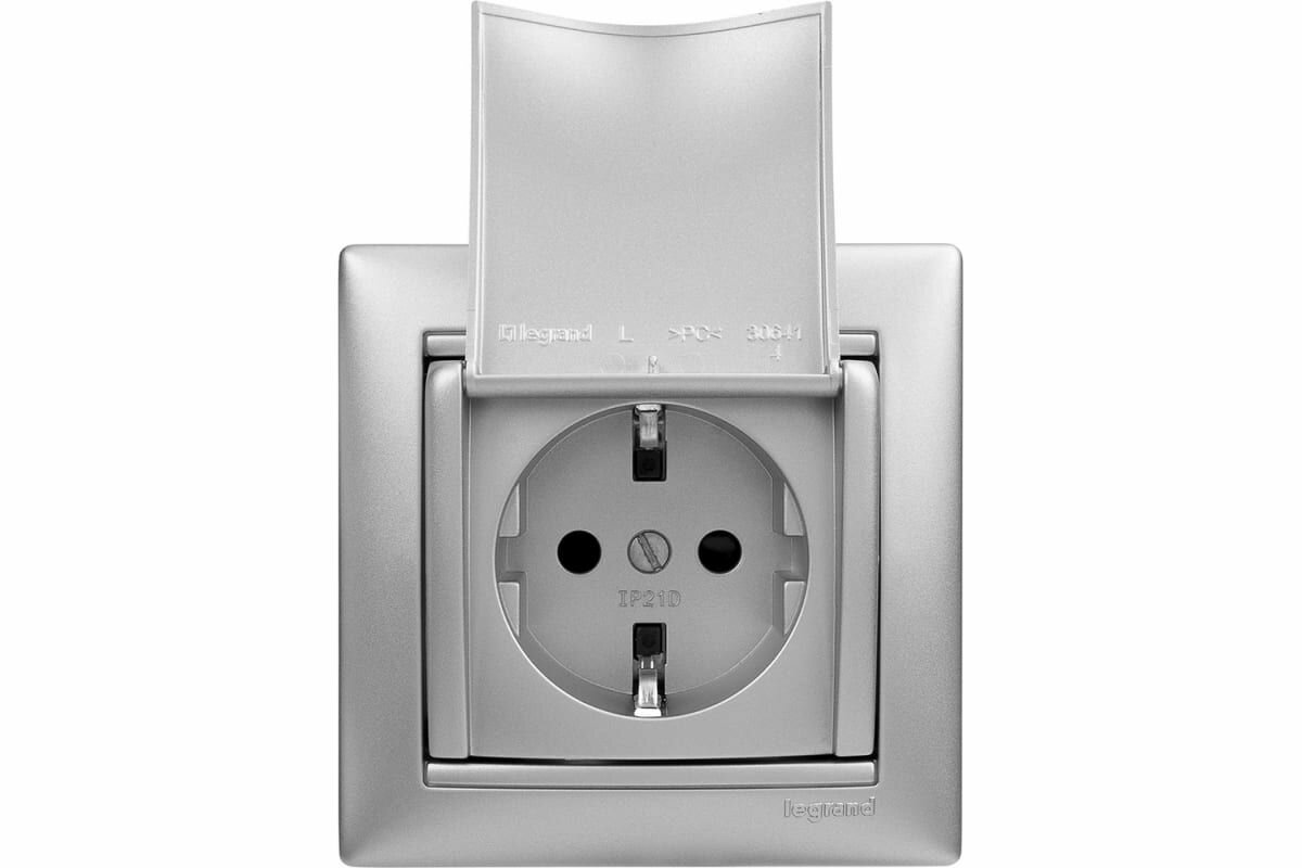 10 цен на Розетка 1-ая с/з с крышкой и защитными шторками IP21 Legrand Valena (Алюминий) арт. 770122 (1шт)