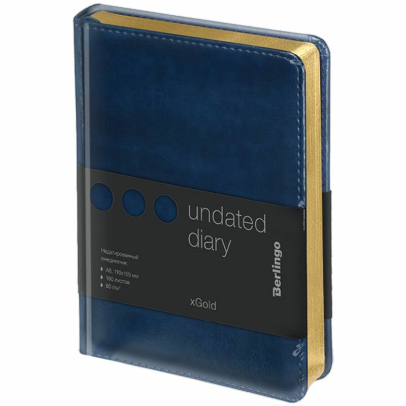 Ежедневник недатированный Berlingo A6, 160 л, кожзам, "xGold", золотой срез, синий (UD0_81601)
