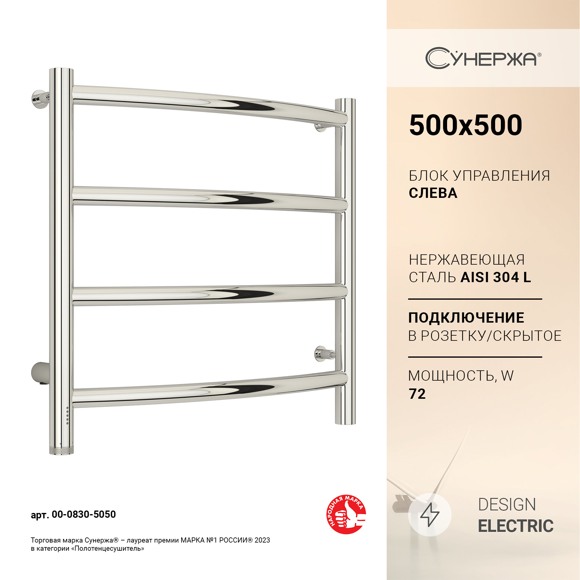 Полотенцесушитель электрический Сунержа Галант 4.0 500х500 МЭМ левый Без покрытия 00-0830-5050 19 845 ₽