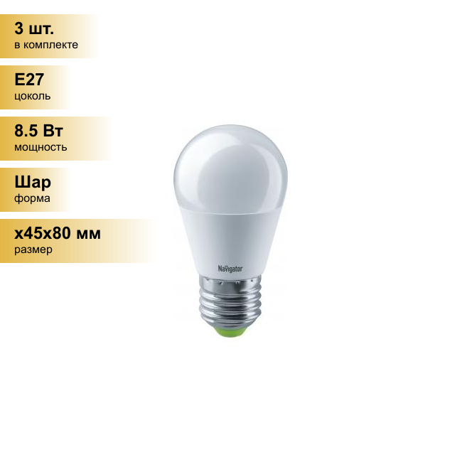 Лампа светодиодная 61 337 NLL-G45-8.5-230-4K-E27 | код. 61337 | Navigator (3шт.в упак.) информация:
