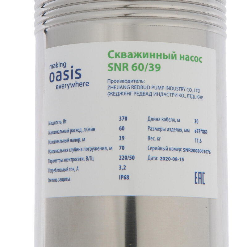 Насос скважинный Oasis SNR 60/39, 4400098 информация:
