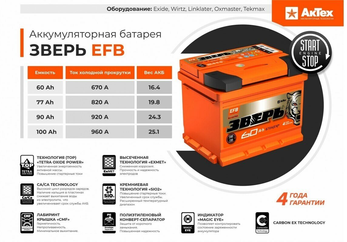 10 цен на Автомобильный аккумулятор зверь EFB 60 А.ч Прямая полярность