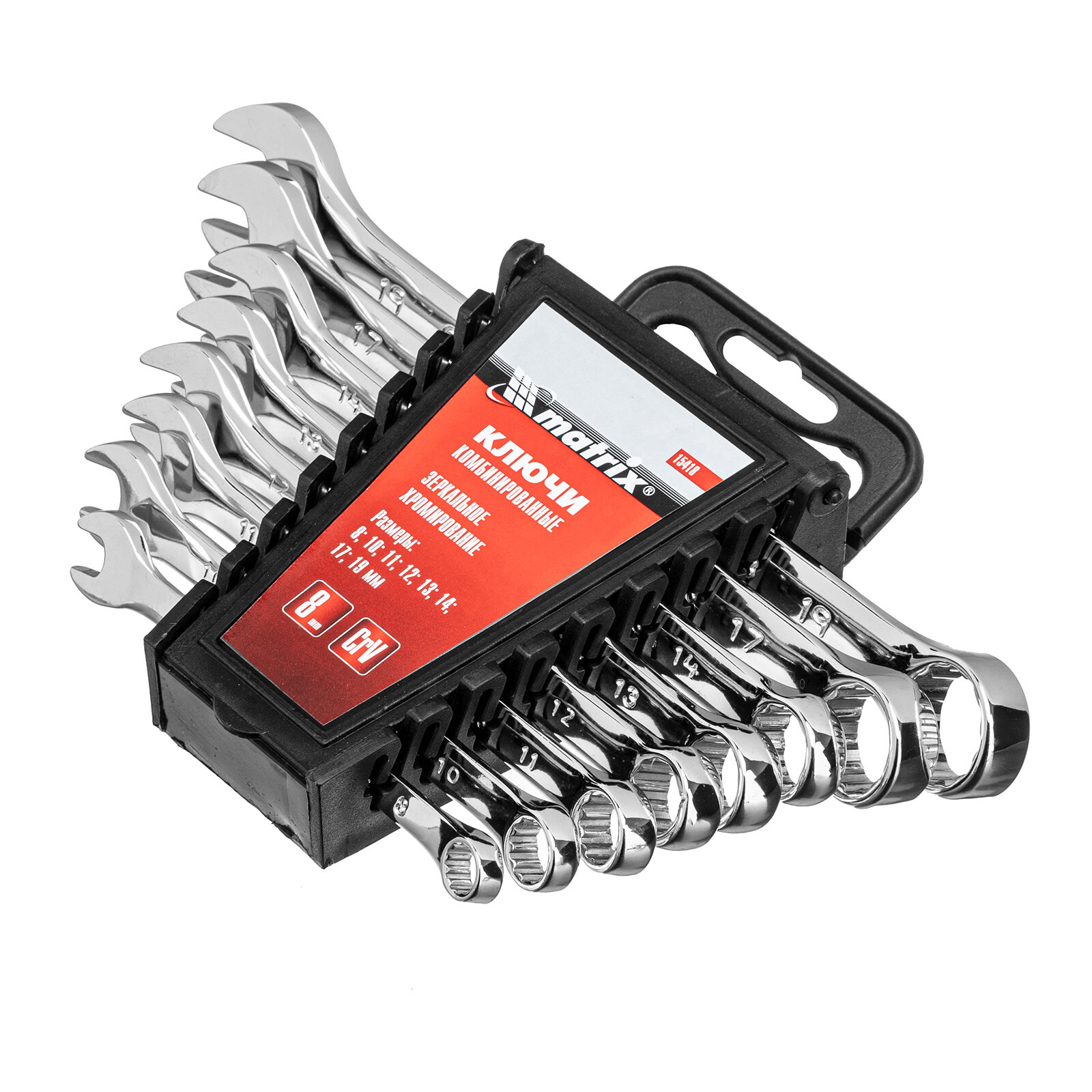 10 цен на Набор ключей комбинированных, 8-19 мм, 8 шт, CrV, полированный хром Matrix
