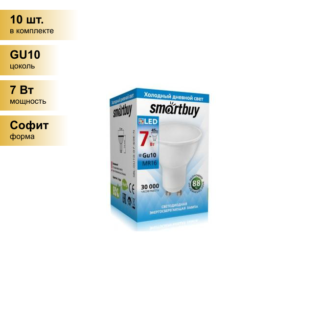 10 цен на Светодиодная (LED) Лампа SMARTBUY (SBL-GU10-07-60K-N) 7W/6000/GU10 10 шт