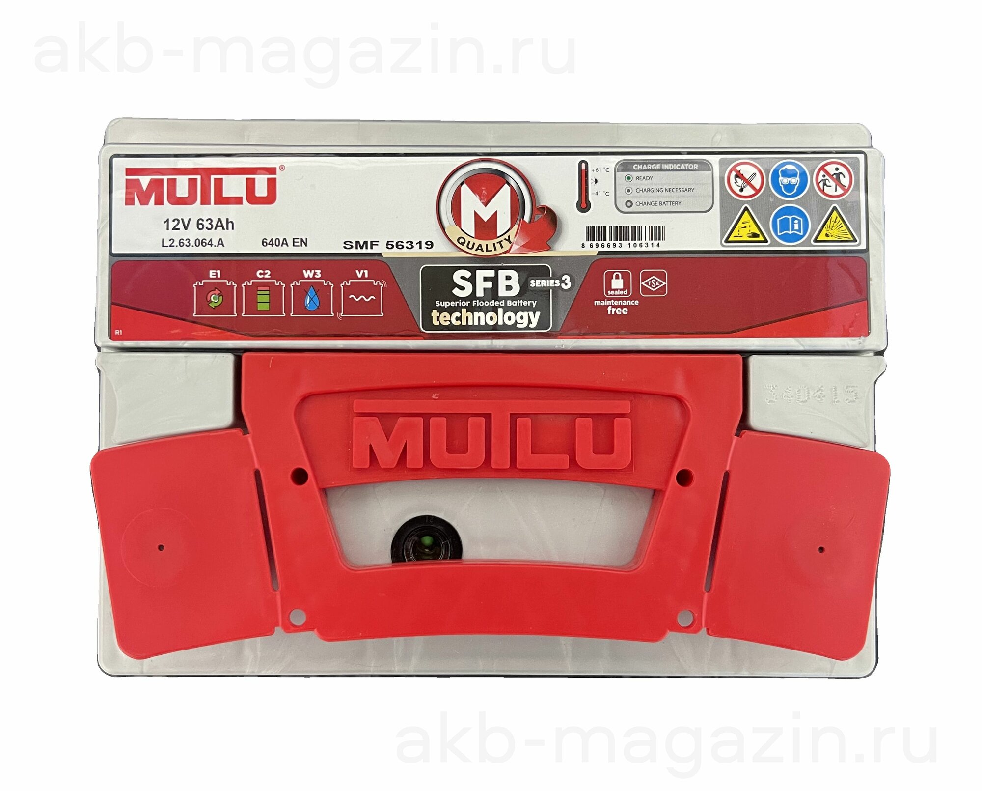 Аккумулятор автомобильный Mutlu 63 А/ч 640 А обр. пол. Евро авто (242x175x190) L2.63.064. A