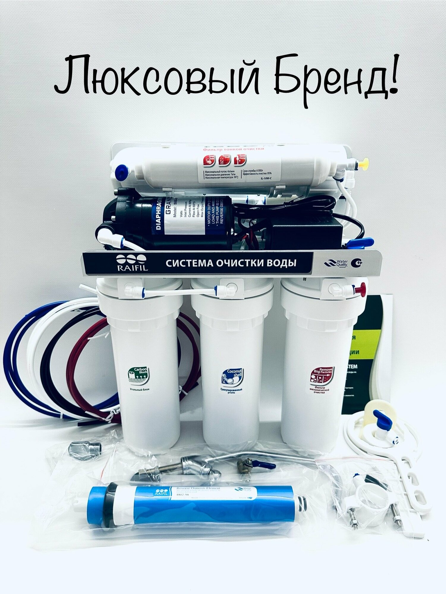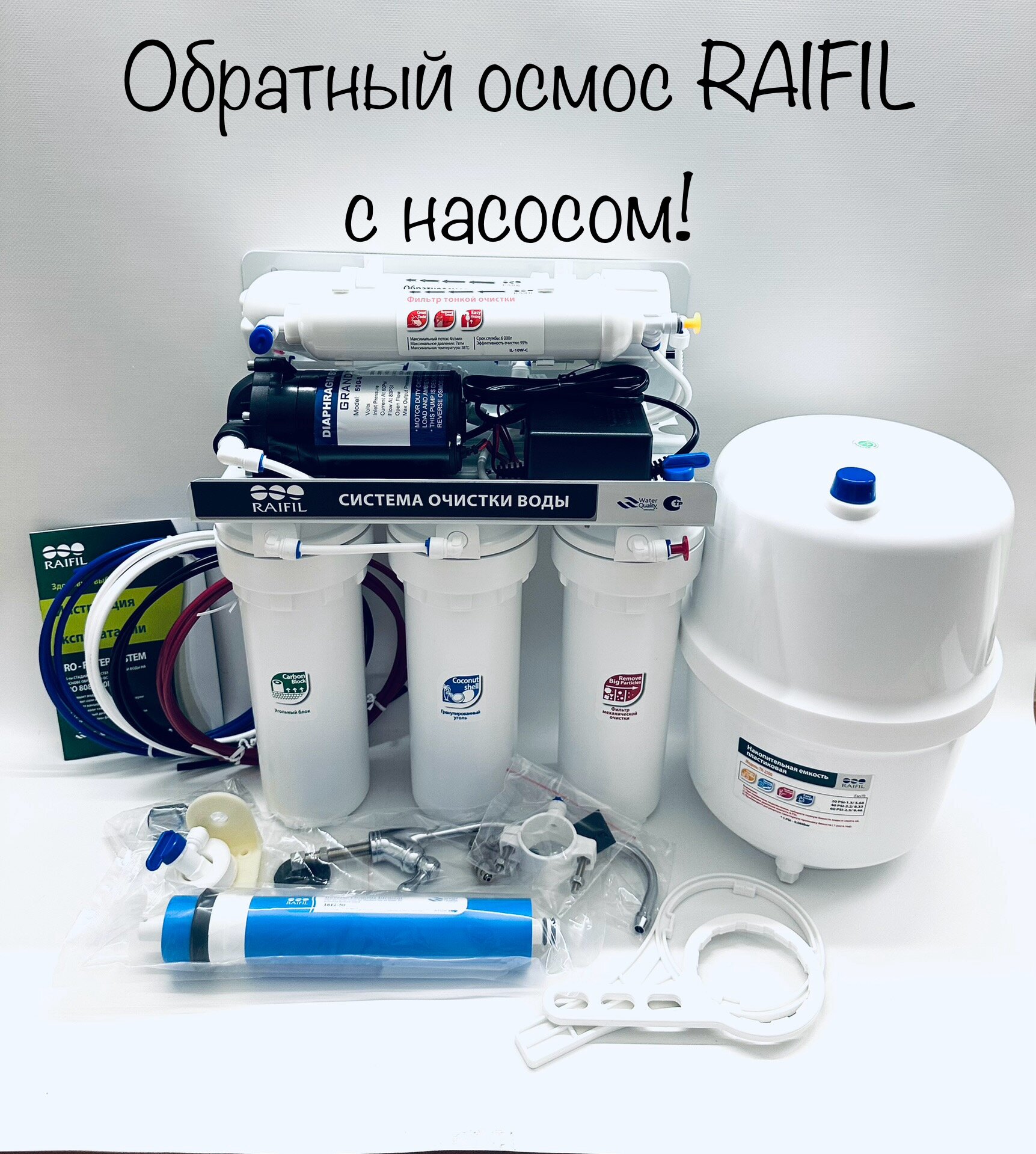 Бытовой фильтр обратного осмоса под мойку Raifil RO 808-550BP-ez с насосом повышения давления информация: