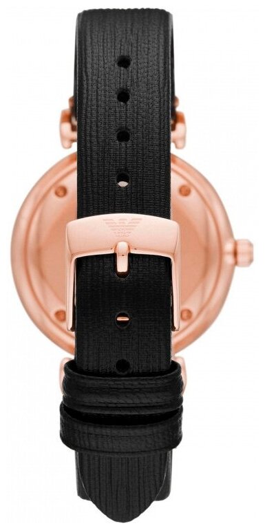 Часы наручные женские Emporio Armani AR11598 кварцевые на кожаном браслете черного цвета с минеральным стеклом водонепроницаемостью WR50 (5 атм)