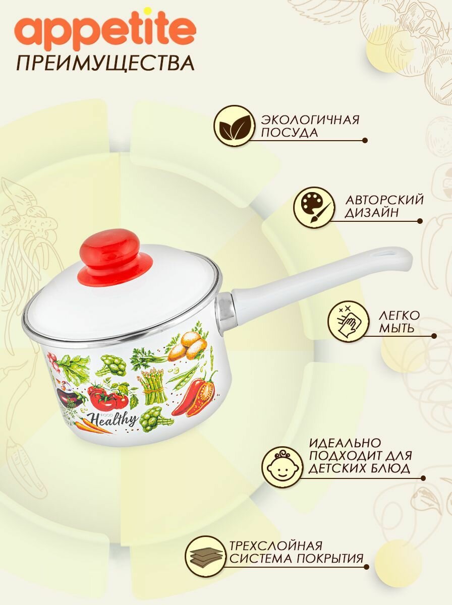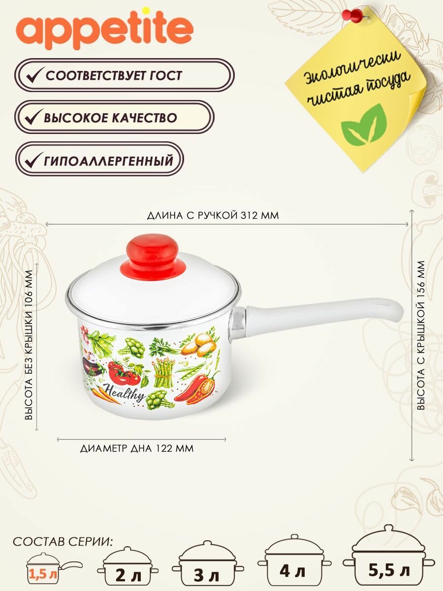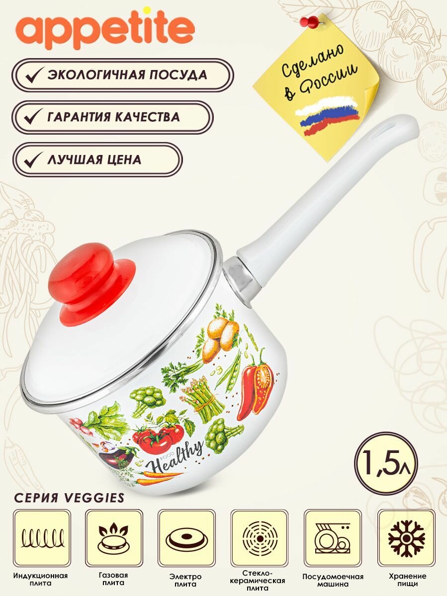 Ковш эмалированный с крышкой 1,5л Veggies ТМ Appetite информация: