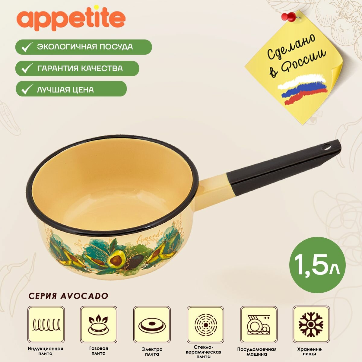 10 цен на appetite Ковш эмал 1,5л цил Avocado С2008 С2008 Avocado .