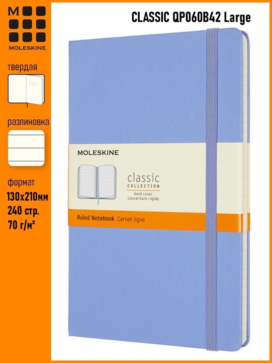 Moleskine QP060B42 Блокнот moleskine classic, large 130х210 мм, линейка, твердая обложка, голубая гортензия 3 569 ₽