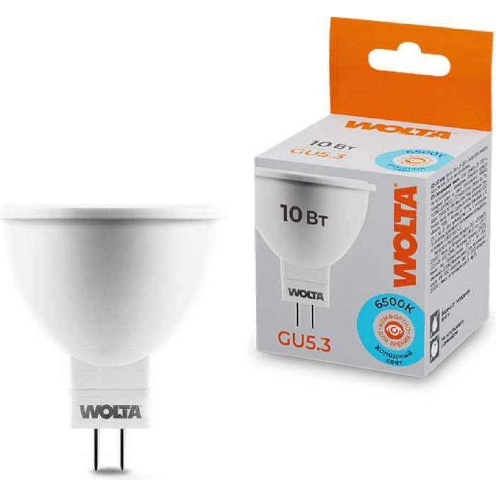 Отзывы на (2 шт.) Светодиодная лампочка Wolta лампа св/д MR16 GU5.3 220V 10W(825lm) 6500K 6K матов 52X50 25WMR16-220-10GU5.3 . Цоколь GU5.3