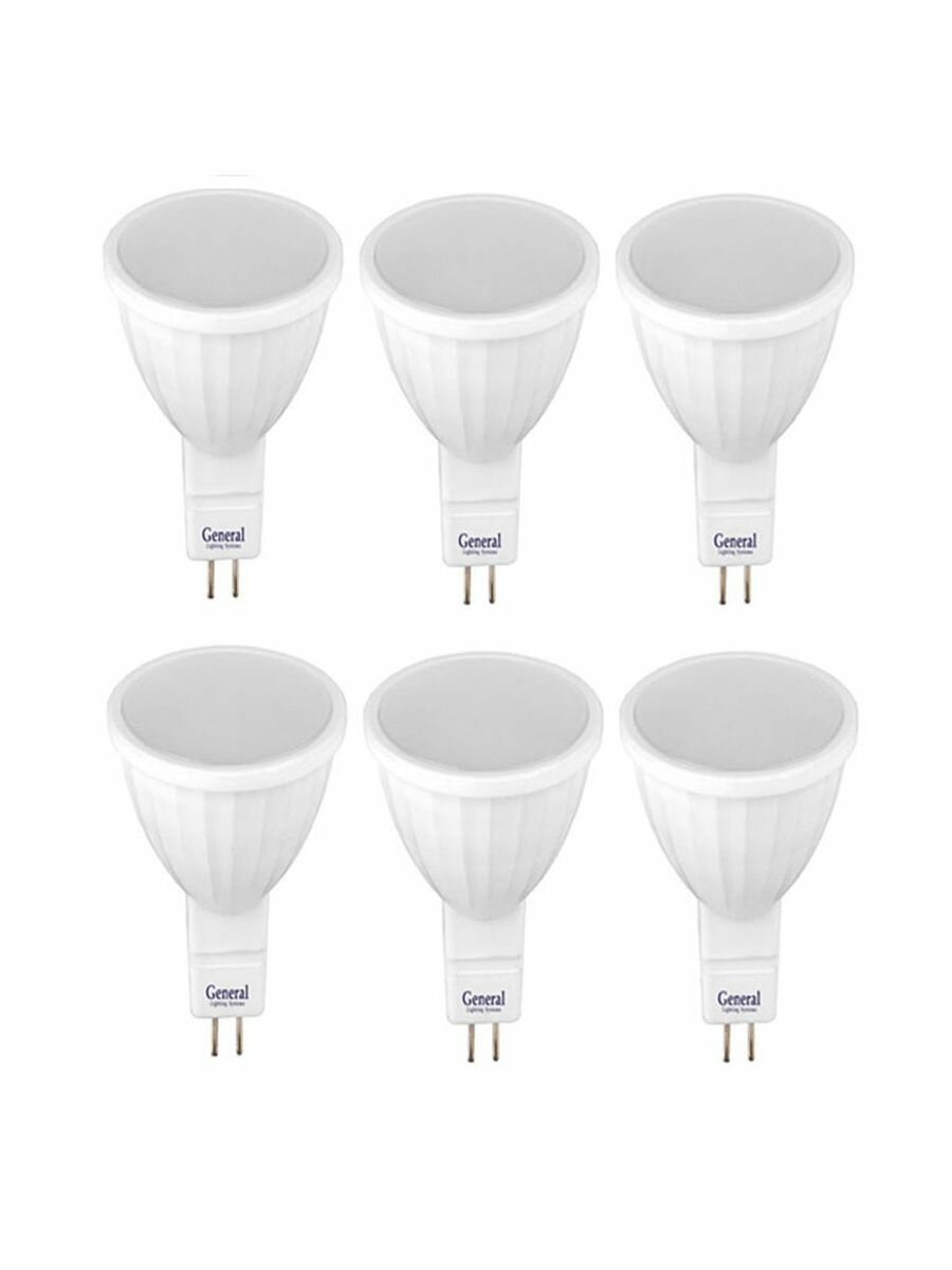 Лампочка светодиодная, General, Комплект из 6 шт., 7 Вт, Цоколь GU5.3, 4500К, Матовый рассеиватель, MR16