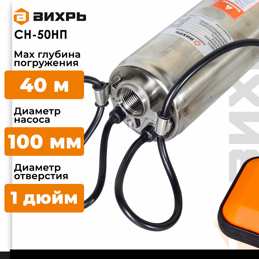 Отзывы на Насос / Скважинный насос Вихрь СН-50НП (600 Вт, высота подъема – 50 м, 55 л/мин, 1”, глубина погружения в воду до 40 м, 4”)