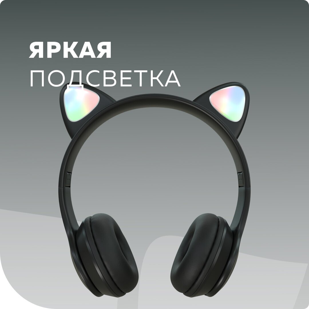 Детские беспроводные наушники накладные с кошачьими ушками, с подстветкой, 200mAh More choice HW24kids черные