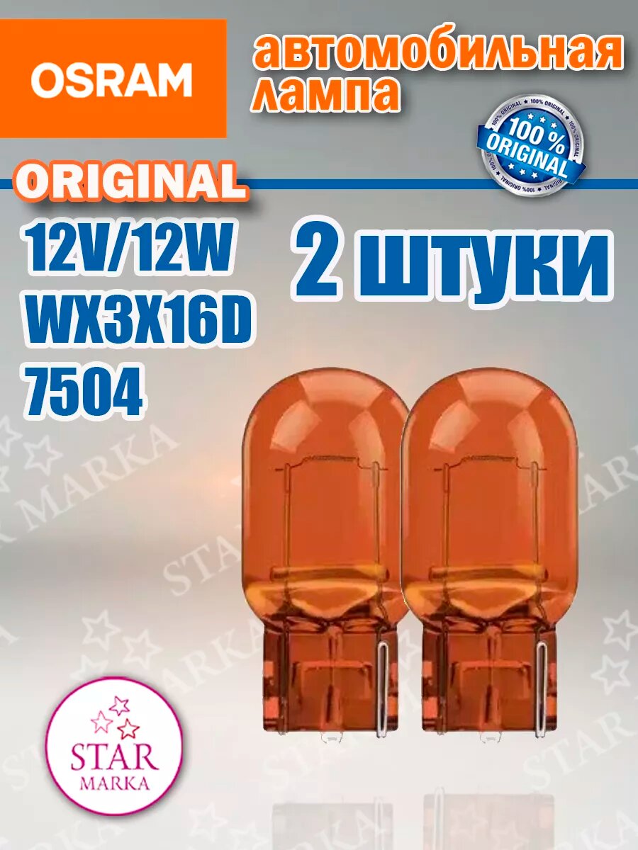 Лампа 7504 WY21W 12V(21W) W3x16d оранжевая стеклянный цоколь OSRAM Артикул: 7504