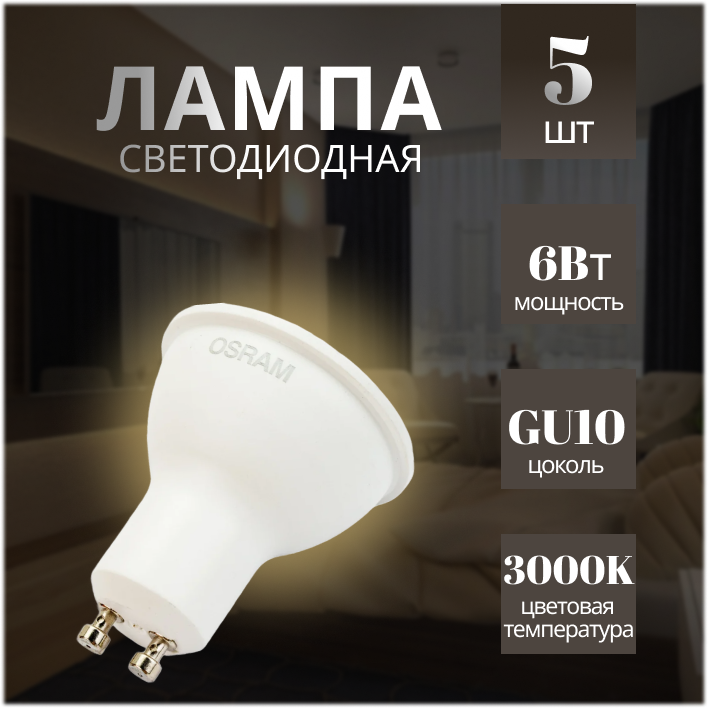 Отзывы на Лампочка светодиодная Osram LED Value LED-GU10 6Вт/830 3000K (комплект 5шт) 4058075584891
