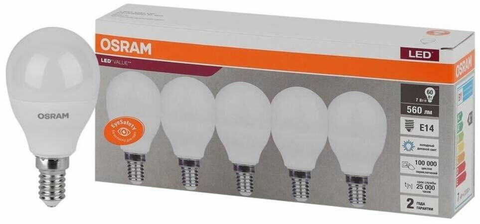 Отзывы на Лампочка светодиодная Osram FR LED Value LED-P60 7Вт/865 E14 6500K (комплект 5шт.) 4058075578166